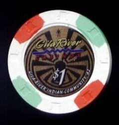 | 17. | Gila River Indian Casino Gila River AZ, 1.00 White chip, 2 green / 2 orange inserts, H&C mold, circle inlay