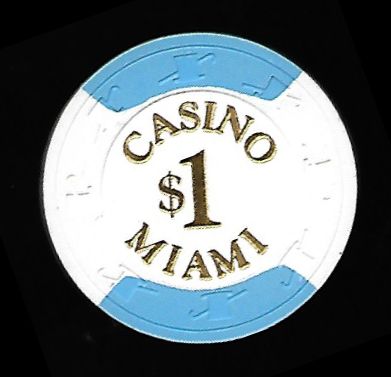 | 4. | Casino Miami Miami FL, 1.00 White chip, H&C mold, circle inlay, 2 blue inserts, hotstamped