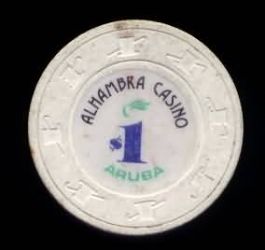 | 4. | Alhambra Casino Aruba, 1.00 White chip, H&C mold, circle inlay