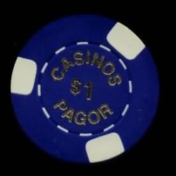 | 60. | Casinos Pagor Caribbean, 1.00 Dark blue chip, 3 tan inserts, circle inlay, hotstamped