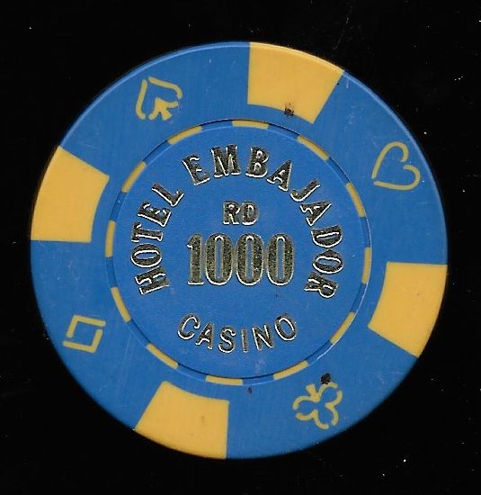 | 107. | Hotel Embajador Dominican West Indies, 1.00 Navy chip, Langworthy inlay, 8Suits mold