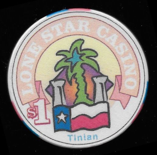 | 119. | Lone Star Casino Tinian Mariana Islands, 1.00 White chip, smooth finish, palm tree, Tinian flag, 3 red/blue rim inserts