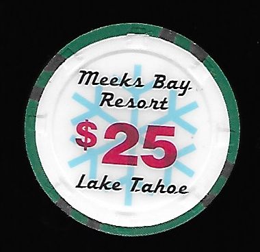 | 53. | Meeks Bay Resort Lake Tahoe CA, 25.00 Green chip, white inlay, H&C mold, snowflake