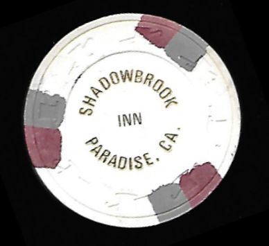 | 78. | Shadowbrook Inn Paradise CA, 100.00 White chip, 3 maroon/gray inserts, H&C mold, hotstamped