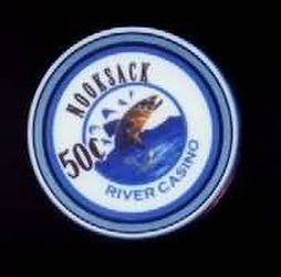 | 59. | Nooksack River Casino Federalway WA, 0.50 White Chip, green & blue trianglar inserts, H&C mold, exposed blackjack design