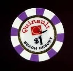 | 74. | Quinault Beach Resort Ocean Shores WA, 1.00 White chip, 8 purple inserts, gold embossed circle inlay