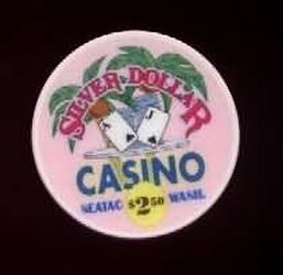 | 85. | Silver Dollar Casino Seatac WA, 2.50 Pink chip, satin finish, palm trees