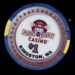 | 71. | Point No Point Casino Kingston WA, 1.00 Blue chip, 2 triangle yellow inserts, circle inlay, ring of suits