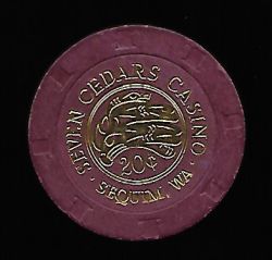 | 79. | Seven Cedars Casino Sequim WA, 0.20 Maroon chip, H&C mold, hotstamped, snake design