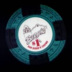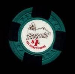 | 11. | Barona Tribal Casino San Diego CA, 1.00 Green chip, 4 wide black inserts, Ewing mold, mission outline