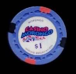 | 34. | Casino Morongo Palm Springs CA, 1.00 Blue chip, SC mold, 2 wide brown / 2 wide pink inserts, circle inlay