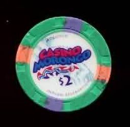 | 35. | Casino Morongo Palm Springs CA, 2.00 Green chip, TH mold, 2 orange / 2 purple inserts, circle inlay