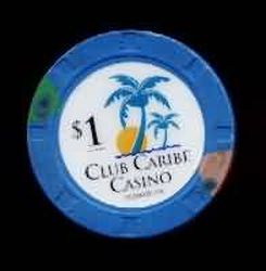 | 47. | Club Caribe Cudahy CA, 1.00 Blue chip, H&C mold, green / pink triangle inserts, circle inlay, palm trees design