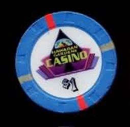| 77. | Hawaiian Gardens Hawaiian Gardens CA, 1.00 Blue chip, 2 orange / 2 red inserts, circle inlay