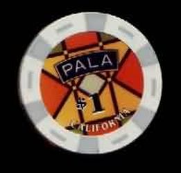 | 126. | Pala Casino Pala CA, 1.00 Off-white chip, 6 gray inserts, 6 horizontal line inserts, circle inlay