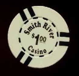 | 161. | Smith River Casino Smith River CA, 1.00 Tan chip, 6 dark blue inserts, hotstamped, Langworthy mold