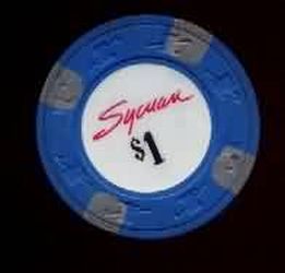 | 176. | Sycuan Casino San Diego CA, 1.00 Blue chip, 4 gray inserts, H&C mold