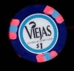 | 187. | Viejas Casino San Diego CA, 1.00 Purple chip, 3 pink/orange/blue inserts, H&C mold, circle inlay