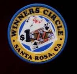 | 193. | Winner's Circle Santa Rosa CA, 1.00 Blue chip, orange circle inlay, H&C mold, pair of aces hand design