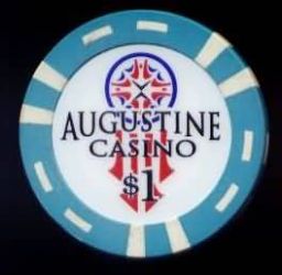 | 9. | Augustine Casino Coachella CA, 1.00 Aqua chip, 6 horiz white inserts, 6 vertical white inserts, circle inlay