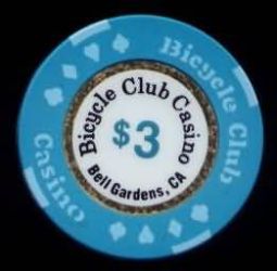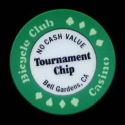 | 18. | Bicycle Club Bell Gardens CA, Green chip, yellow inserts. NCV, Tournament Chip