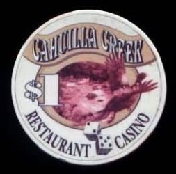 | 25. | Cahuilla Creek Anza CA, 1.00 White chip, satin finish, 2 brown inserts on rim, creek photo