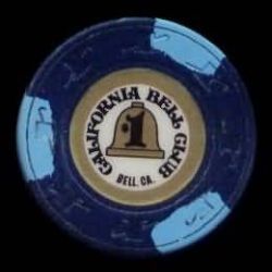 | 28. | California Bell Club Bell CA, 1.00 Blue chip, H&C mold, 3 light blue inserts, circle inlay, bell design