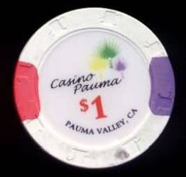 | 36. | Casino Pauma Pauma CA, 1.00 White chip, circle inlay, 1 red / 1 blue inserts