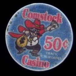 | 53. | Comstock Casino Tracy CA, 0.50 Smooth chip, prospector holding cash and cards