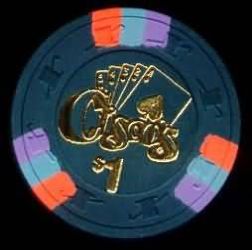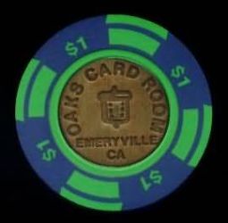 | 113. | Oaks Card Room Emeryville CA, 1.00 Blue chip, green stripes mold, coin center