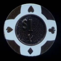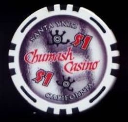 | 41. | Chumash Casino Santa Ynez CA, 1.00 White chip, 12 black inserts, 4 horizontal inserts, Indian symbols