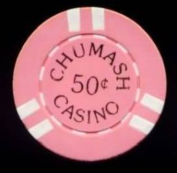 | 40. | Chumash Casino Santa Ynez CA, 0.50 Pink chip, 6 white inserts, Langworthy mold, hotstamped