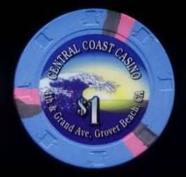 | 38. | Central Coast Casino Grover Beach CA, 1.00 Blue chip, circle inlay, cresting waves, 3 brown/pink inserts