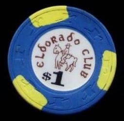 | 67. | Eldorado Club Gardenia CA, 1.00 Blue chip, 3 yellow inserts, H&C mold, circle inlay