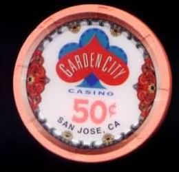 | 73. | Garden City Casino San Jose CA, 0.50 Light orange chip, H&C mold, circle inlay