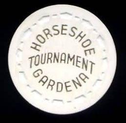 | 85. | Horseshoe Casino Gardenia CA, White chip, SC mold, circle inlay, hotstamped, NCV
