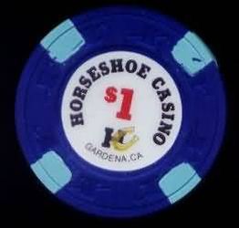 | 86. | Horseshoe Casino Gardenia CA, 0.25 White chip, SC mold, 4 white inserts, circle inlay, hotstamped