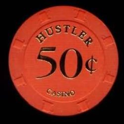 | 88. | Hustler Casino Gardenia CA, 0.50 Orange chip, circle inlay, hotstamped