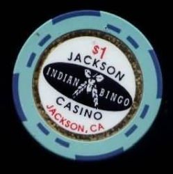 | 91. | Jackson Indian Bingo Jackson CA, 1.00 Green chip, light blue inserts, circle inlay, gold ring