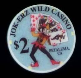 | 92. | Jok-Erz Wild Casino Petaluma CA, 2.00 Smooth chip, joker holding royal flush