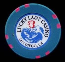 | 101. | Lucky Lady Casino San Diego CA, 3.00 Green chip, 8 pink inserts, circle inlay, wave design