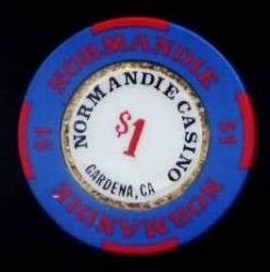 | 110. | Normandie Casino Gardenia CA, 1.00 Blue chip, circle inlay, red inserts