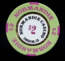 | 111. | Normandie Casino Gardenia CA, 2.00 Green chip, circle inlay, purple inserts