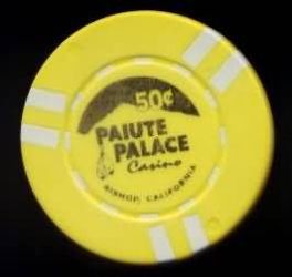 | 125. | Paiute Palace Bishop CA, 0.50 Yellow chip, 6 silver inserts, circle inlay, hotstamped