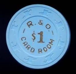 | 135. | R&O Card Room Prunedale CA, 1.00 Blue chip, circle inlay, hotstamped