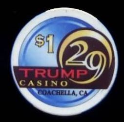 | 184. | Trump 29 Casino Coachella CA, 1.00 White chip, satin finish, 2 black inserts on rim,