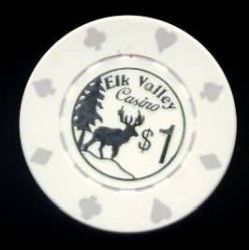 | 69. | Elk Valley Casino Crescent City CA, 1.00 White chip, gray 8Suits Langworthy mold, circle inlay, hotstamped, elk