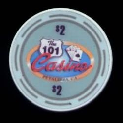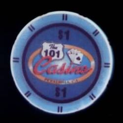 | 1. | 101 Casino Petaluma CA, 1.00 Blue chip, smooth finish, black inserts, Route 101 road sign