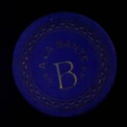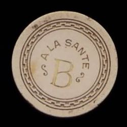 | 3. | A La Sante Los Banos CA, 0.05 Beige chip, zigzag mold, hotstamped, B monogram