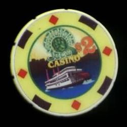 | 8. | Artichoke Joe's San Bruno CA, 2.00 Yellow chip, smooth finish, 4 black inserts, 4 red diamonds inserts, riverboat